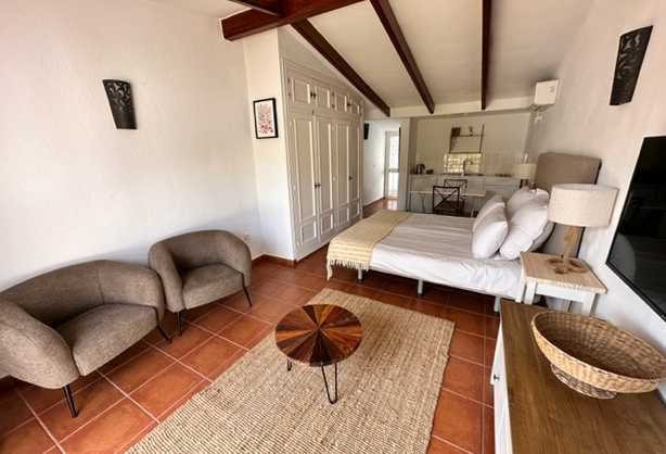 Le studio peut accueillir 1 à 2 personnes et dispose d'une cuisine entièrement équipée et d'une salle de bain séparée avec baignoire/douche et WC. Equipé de draps et serviettes de toilette. Terrasse donnant sur la piscine